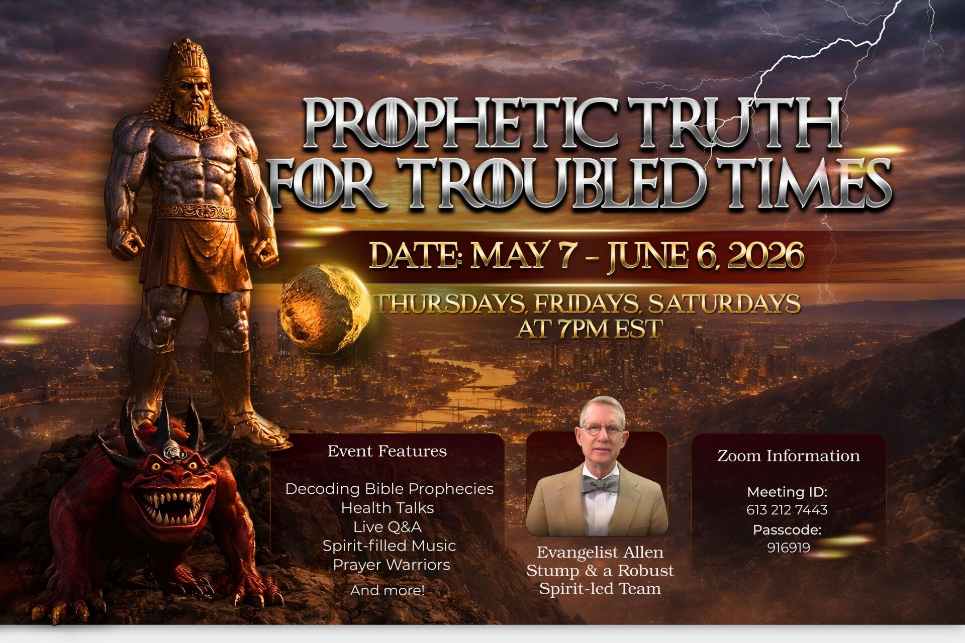 Prophetic Truth for Troubled Times is a Prophecy Seminar designed to help you understand current events through the lens of Scripture and discover God’s promises for the days we are living in. We’re glad you’re here and invite you to join our online community as we explore divine wisdom, grow together, and find lasting hope in God’s prophetic truth.